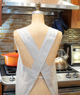 Easy linen pullover cross back apron is perfect for easy housework or kitchen work, whenever you don't want to get light dirt on yourself. This is a great layering piece also looking like a dress. A single pocket to hold a phone.