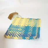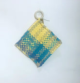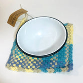 100% cotton woven trivet to grab hot dishes with or use as a protective cover on your table. I create each of these potholders in seasonal colors. Add a touch of handmade charm to your space. Made with durable cotton, each one also features a wood hanging loop. After being washed, these 8" square potholders shrink to 7" and can be easily cleaned by machine wash cold, drying flat or tumble drying.