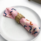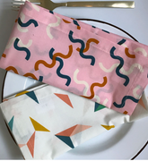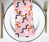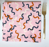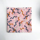 Cotton Candy color in this fun, modern print called anagram. Colors in the print are blue, off white and caramel. Beautiful soft cotton. After drying, fold while warm to prevent any wrinkles.