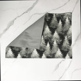 Black and white pine trees setting a very peaceful scene. Reverses to a medium solid grey water resistant.