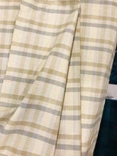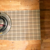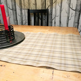 Three color small check plaid table that will compliment any wood table. Warm tan, grey and olive are in a tight weave, durable but soft.