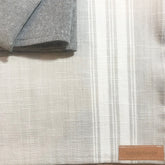 A beautiful cotton slubby weave in flax with a natural color stripe. Has a nice weight.