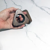 Bring a touch of elegance and natural beauty to your table setting with these handcrafted walnut wood triangle napkin rings. Each ring shows the intricate grain of the wood and can be mixed and matched with our square rings for a truly unique and sophisticated look. Available in sets of 2.