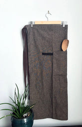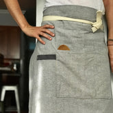 Bistro style waist apron in a beautiful linen cotton blend. A longer length protecting your legs from spills and splatters. Classic length for servers, perfect for bakers and potters.
