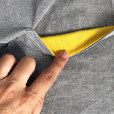 Two pockets with contrast fabric lining for a pop of color and durability. Choose gray chambray or espresso brown.