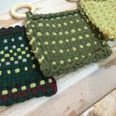 100% cotton woven trivet to grab hot dishes with or use as a protective cover on your table.  Comes in a variety of green plaids to choose from or buy a set